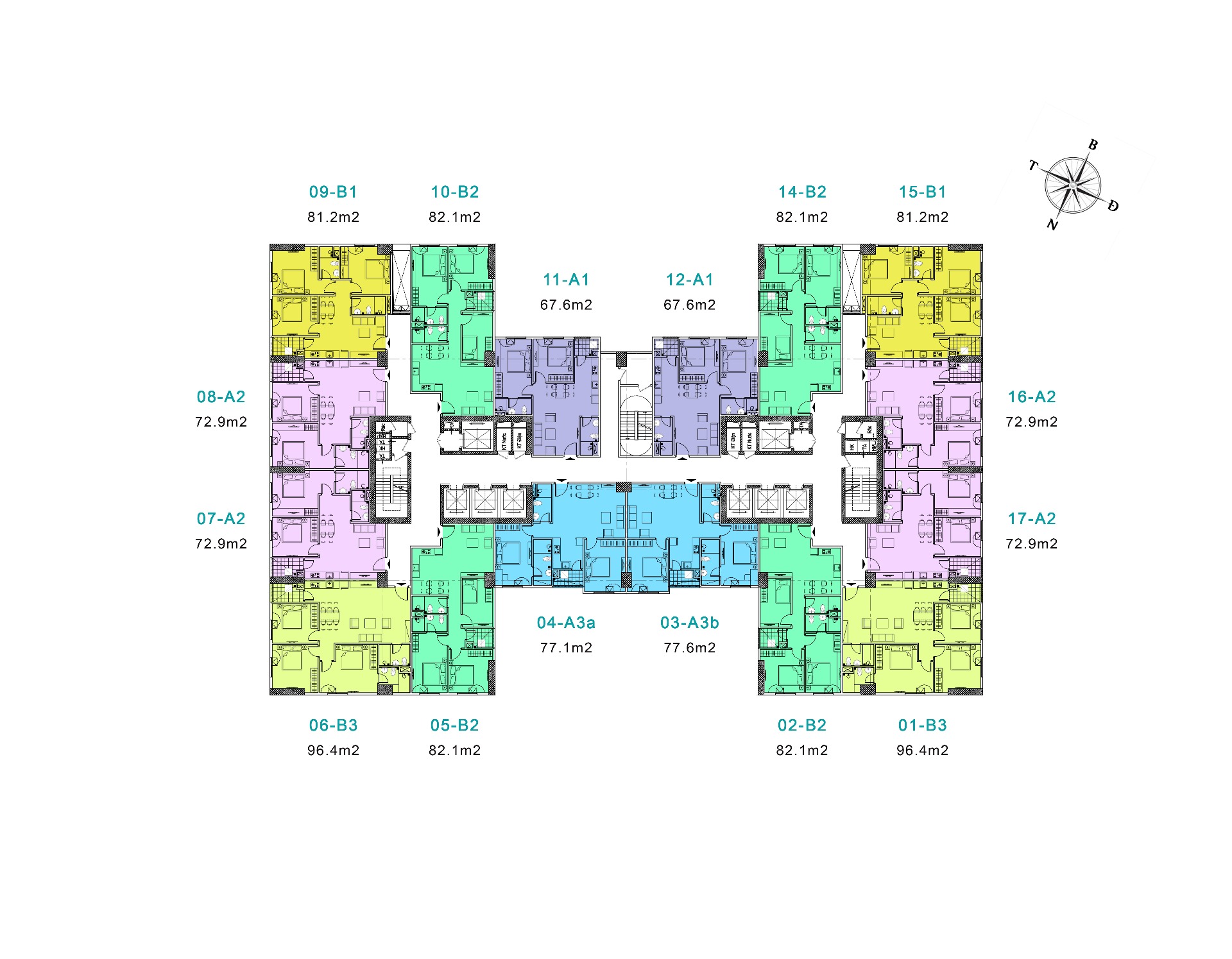 - Cơ cấu căn hộ: 2PN: 67 - 72 - 77m2, 3PN: 82 - 96m2.