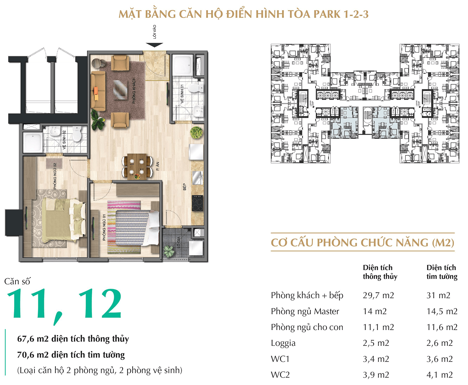 Căn 2 phòng ngủ diện tích: