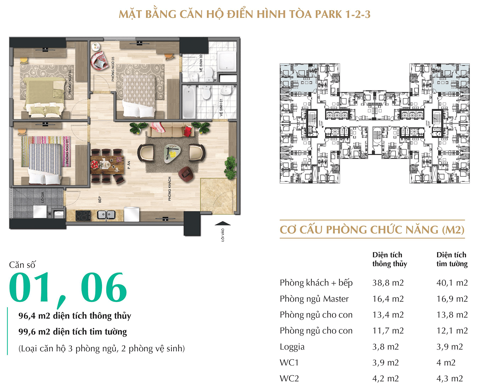 Căn 3 phòng ngủ diện tích: